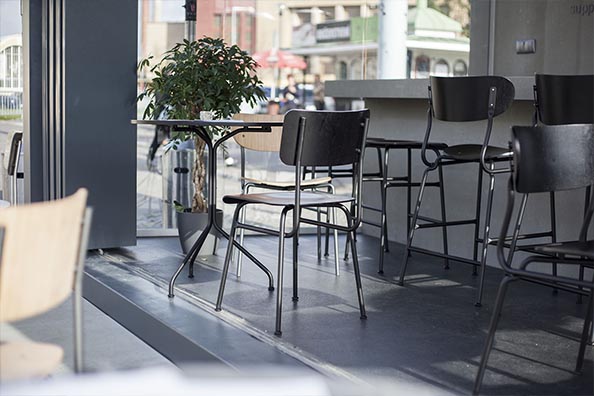 The Bohém bar stool has a stable structure and, thanks to the proportions of the seat and the armrest, it remains comfortable even after you’ve been sitting on it for a long time. Due to the materials it is made of, it can used inside as well as outside.